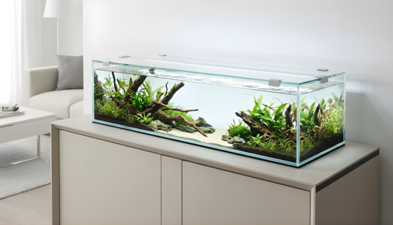 La Forme : Longueur > Hauteur. Le Betta possède un labyrinthe pour respirer en surface. Ne l’épuisez pas avec un aquarium « colonne » trop haut. Privilégiez toujours la surface au sol (un bac rectangulaire long) qui offre un véritable territoire de nage.