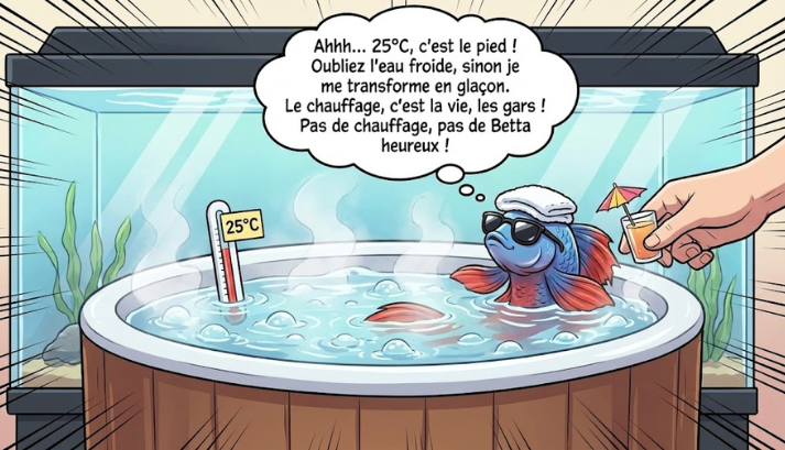 Le Betta est un animal ectotherme (à sang froid) : il ne produit pas sa propre chaleur corporelle. Si l’eau refroidit, son métabolisme s’arrête. Pour le maintenir en vie, la stabilité est plus importante que tout. Une eau à température ambiante (20°C) est insuffisante et le condamne à petit feu.