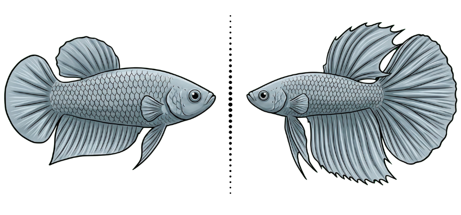 Le terme désigne la longueur (courte) des nageoires, mais la forme peut varier. Les éleveurs ont créé des hybrides spectaculaires